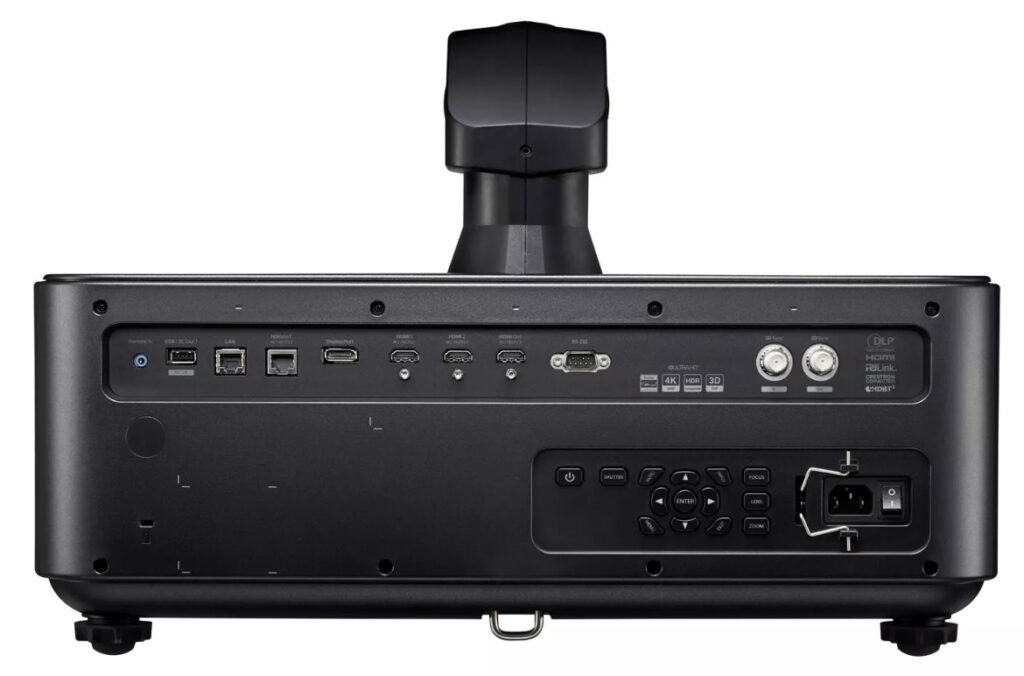 Inputs: The projector includes multiple input options such as HDMI, DisplayPort, DVI, HDBaseT, and VGA, offering flexibility to connect various devices.