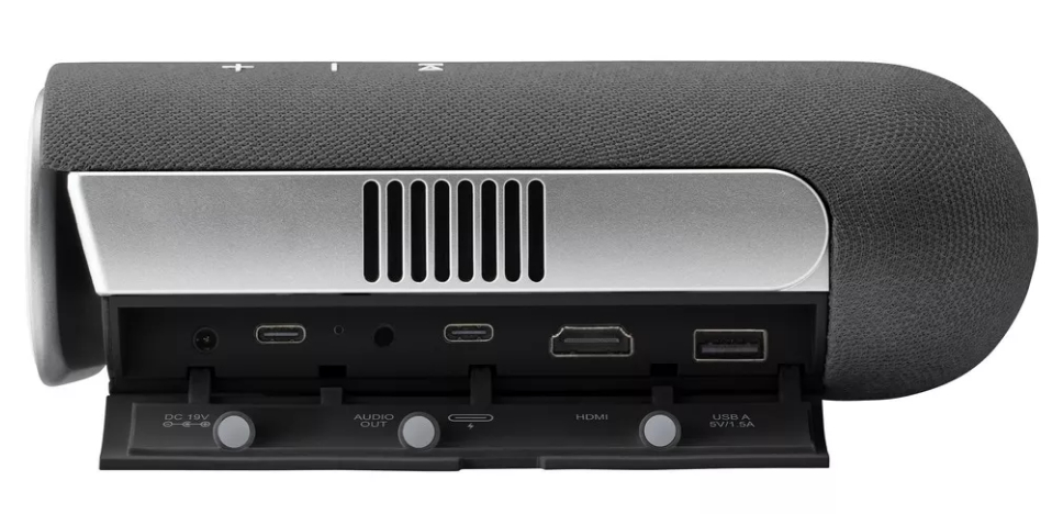 The projector provides multiple connectivity options, including HDMI, USB-C, USB-A, and Bluetooth.
